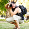Portrait happy young students in park