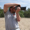 Mirror reflection of a woman worrying because of wrinkles on her forehead.