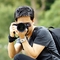 Man doing meditation sitting on the rock, Beautiful Sunset by the sea.