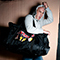 Beautiful young woman, studio photo. Photo toned style instagram filters