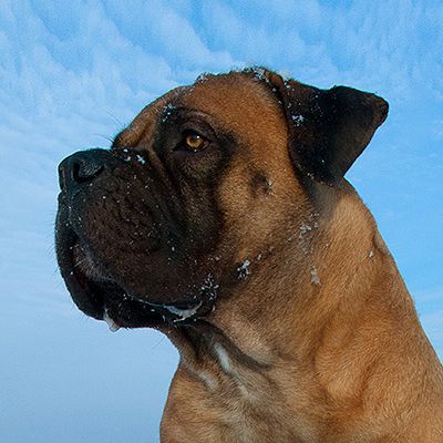 The dog is a rare breed South African Boerboel (South African Mastiff).