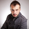 Attractive business man looking down to his side on dark studio background.