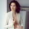 A man in a blue suit holding hands on the ass of a beautiful girl in black lingerie