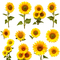 Sunflowers collection on the white background