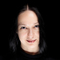 Black plain empty thin wood picture frame with white mat passe-partout on black bricks background