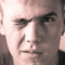 Close-up. Man bartender holds black madler in his hand and energetically squeeze slices of citrus to cocktail. Pieces of ice and lime at the bar.