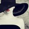 Beautiful female in the bikini and straw hat on the beach and sea background