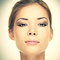 Asian woman beauty face closeup portrait. Beautiful attractive mixed race Chinese Asian / Caucasian female model with perfect skin isolated on white background