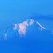 Beautiful young woman in elegant hat and sunglasses posing over sky.